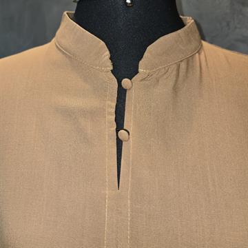 BLUSA FEMININA TENDENZA POSSUI GOLA ALTA COM PEQUENO DETALHE DE ABERTURA EM V NA FRENTE , FECHADA POR DOIS BOTÕES PEQUENO,AS MANGAS SÃO