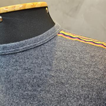 MANGA LONGA, PUNHO CLÁSSICO, COM DETALHES NO OMBRO, LISTRAS COLORIDAS.