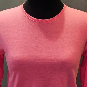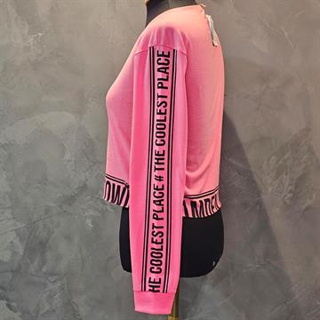 BLUSA FEMININA ROSA EM MALHA DE ALGODÃO CATIVA MANGA LONGA COM ESCRITA NA MANGA E PARTE INFERIOR.