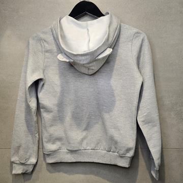 BLUSA MOLETOM JUVENIL FEMININO CINZA COM CAPUZ ORELHA DE GATINHO, CEREJA ROSA. TAM 14.