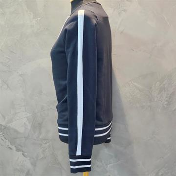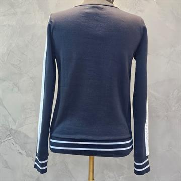ESSA PEÇA TEM DETALHES EM BRANCO NAS MANGAS E CINZA NO PUNHO E NA BARRA. É UMA PEÇA DESPOJADA QUE CAI PERFEITAMENTE COM JEANS.