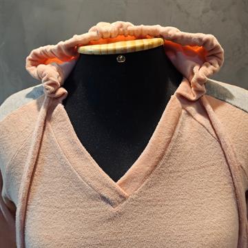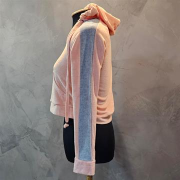 BLUSÃO FEMININO CATIVA DE ALGODÃO SALMÃO. POSSUI LISTRA CINZA NAS MANGAS.