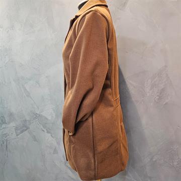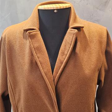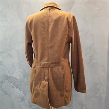 CASACO FEMININO TENDENZA FEITO EM POLIESTER ,NA COR MARROM E PRETO ,MODELO CLÁSSICO ,COM GOLA ,LAPELAS E BOTÕES FRONTAIS.