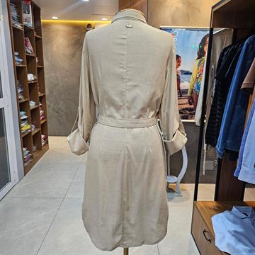 SE ASSEMELHA A UMA CAMISA ALONGADA, COM MANGA LONGA E CINTO.