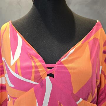 CHEIO DE CHARME E PERSONALIDADE, O CROPPED TENDENZA TRAZ UMA ESTAMPA VIBRANTE COM FOLHAGENS EM TONS DE LARANJA, PINK E BRANCO, PERFEITO PARA QUEM AMA UM VISUAL ALEGRE E MODERNO. COM DECOTE EM V, MANGAS SOLTINHAS E CAIMENTO LEVE, ELE VALORIZA O CORPO COM CONFORTO E ESTILO. IDEAL PARA COMPOR LOOKS FRESCOS E DESPOJADOS NOS DIAS QUENTES!