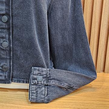 JAQUETA CAMISA FEM. JEANS PRETA CROPPED ML GG