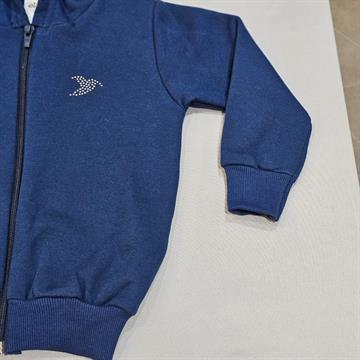 COR AZUL. O CASACO É UMA PEÇA VERSÁTIL QUE PODE SER USADO EM DIVERSAS OCASIÕES. É POPULAR TANTO ENTRE CRIANÇAS QUANTO ENTRE ADULTOS.