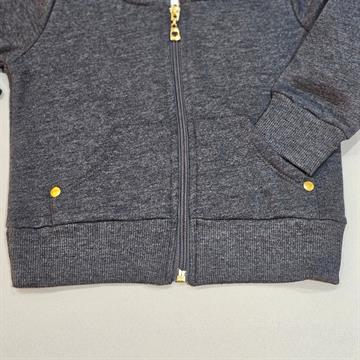 COR CINZA. O CASACO É UMA PEÇA VERSÁTIL QUE PODE SER USADA EM DIVERSAS OCASIÕES. É POPULAR TANTO ENTRE CRIANÇAS QUANTO ENTRE ADULTOS.