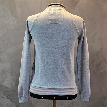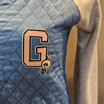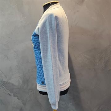 JAQUETA GLOSS FEMININA DE ALGODÃO E POLIÉSTER, COM UM PADRÃO ACOLCHOADO NA PARTE FRONTAL. AZUL E CINZA.