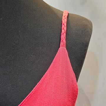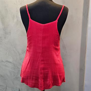REGATA VISCOSE VERMELHA, EXINIA, LISA BOTÕES E ALÇA TRANÇADA. P