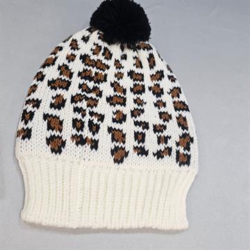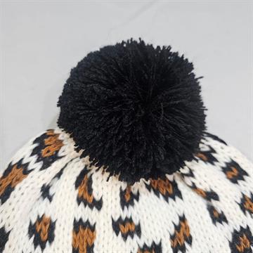 TRAZENDO UM CONCEITO DE SOFISTICAÇÃO.A TOUCA ACRÍLICA ONCINHA POSSUÍ PONTO TRABALHADO,DESENHO JACGUARD,POMPOM PRETO,E MANCHINHAS PRETO COM MARROM.