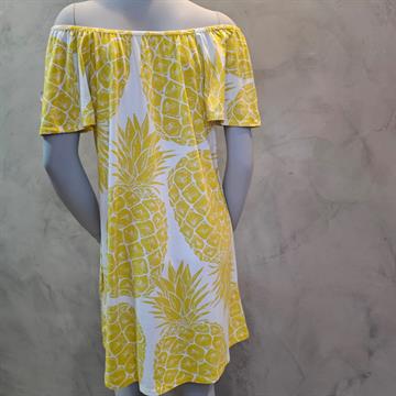 VESTIDO FEM,INFANTIL NANAI MEIA MALHA EST,ABACAXI AMARELO OCRE FUNDO BRANCO 16