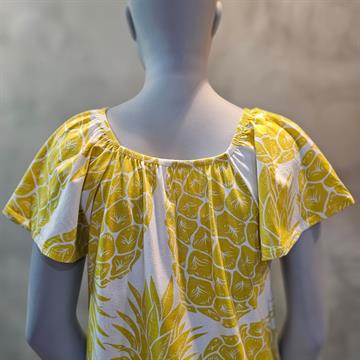 VESTIDO EM MEIA MALHA INFANTIL FEM, NANAI EST, ABACAXI AMARELO OCRE FUNDO BRANCO ; 16