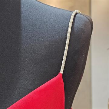 VESTIDO FEMININO HARMONIA TUBINHO ALÇA STRASS VERMELHO BRANCO P M G