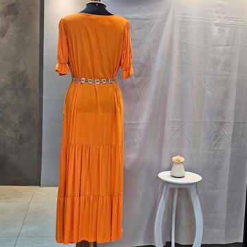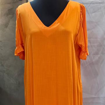 VESTIDO FEMININO LONGO BASICO GOLA V ABOBORA MANGA CURTA EM VISCOSE,